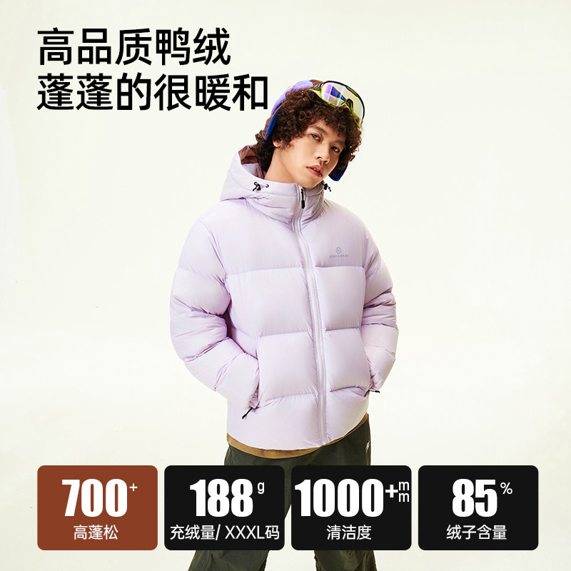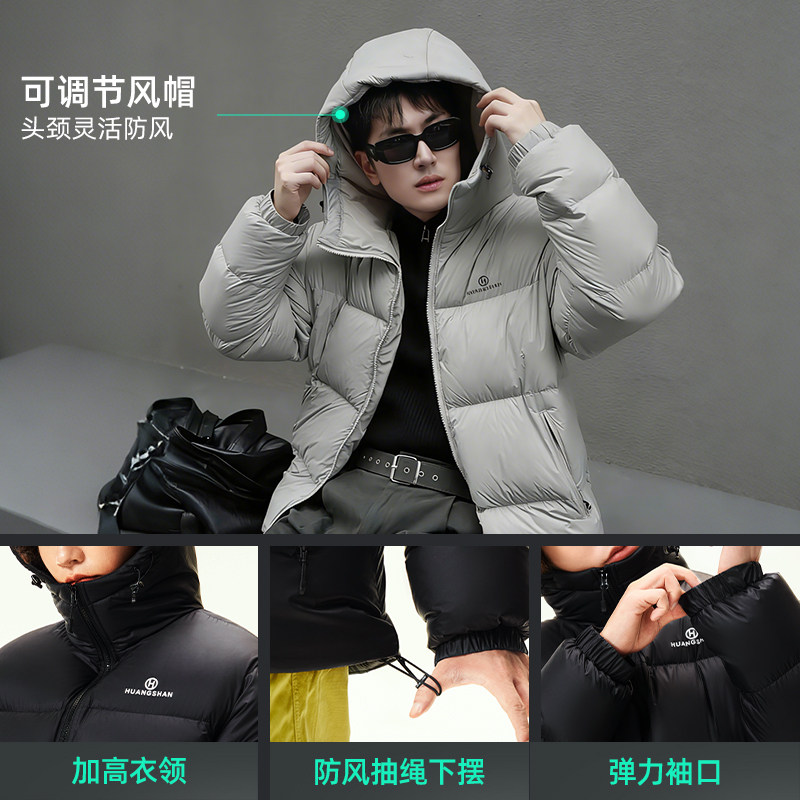 黄山联名骆驼羽绒服黑连帽男女同款加厚保暖外套户外白鸭绒面包服