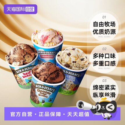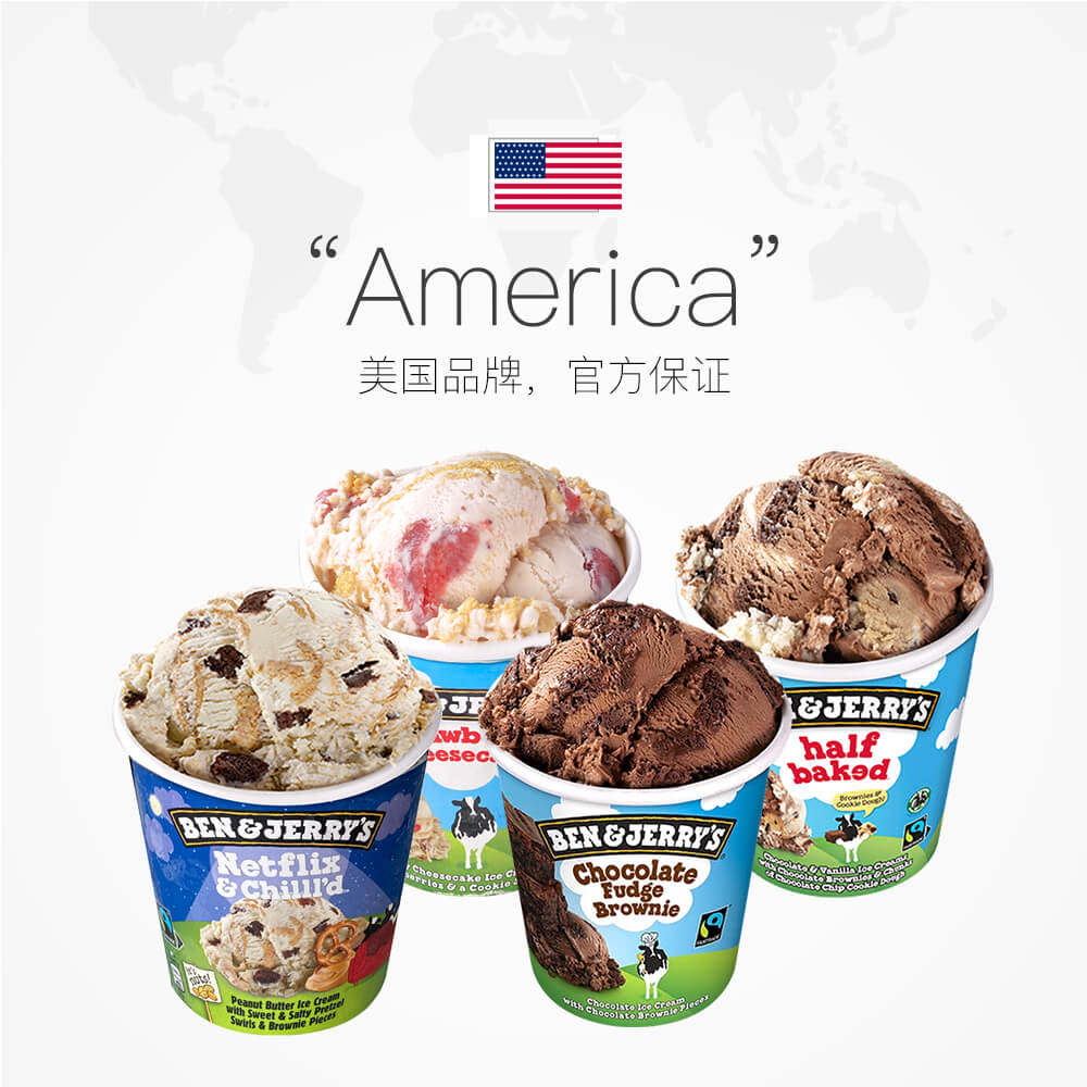 【自营】4桶装Ben&Jerry's本杰瑞冰激淋草莓布朗尼巧克力进口雪糕