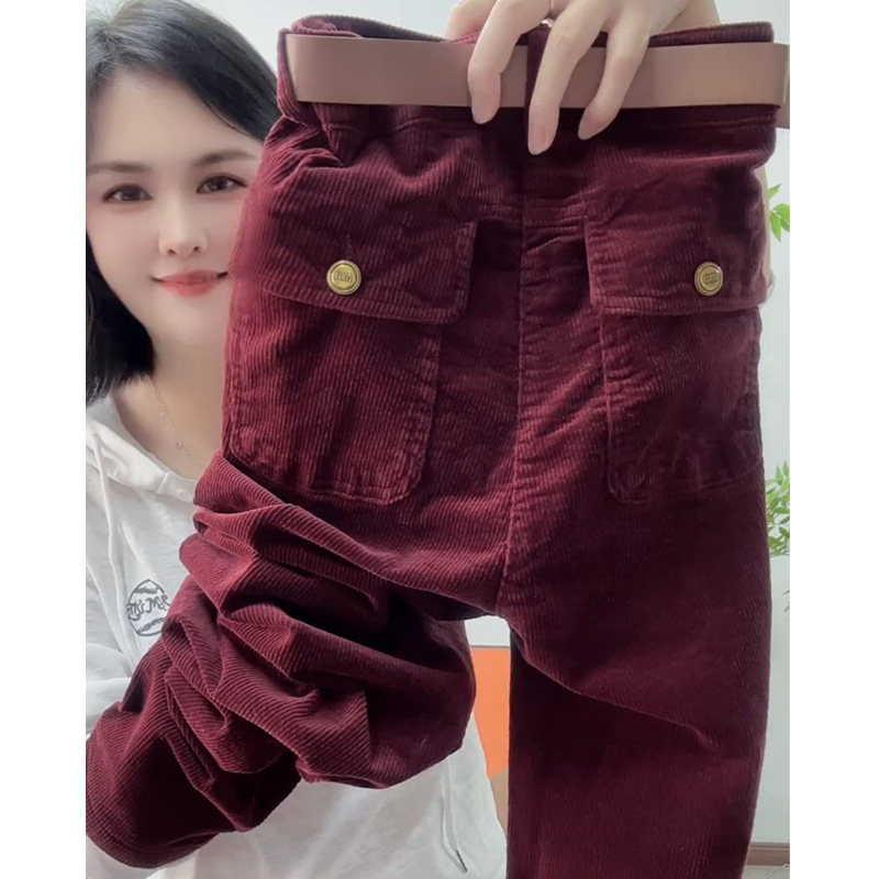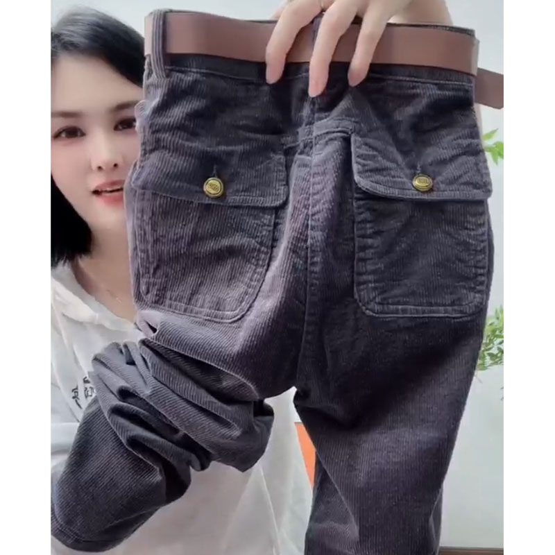 灯芯绒直筒休闲裤女秋季新款高腰显瘦小脚哈伦裤宽松加厚条绒卫裤