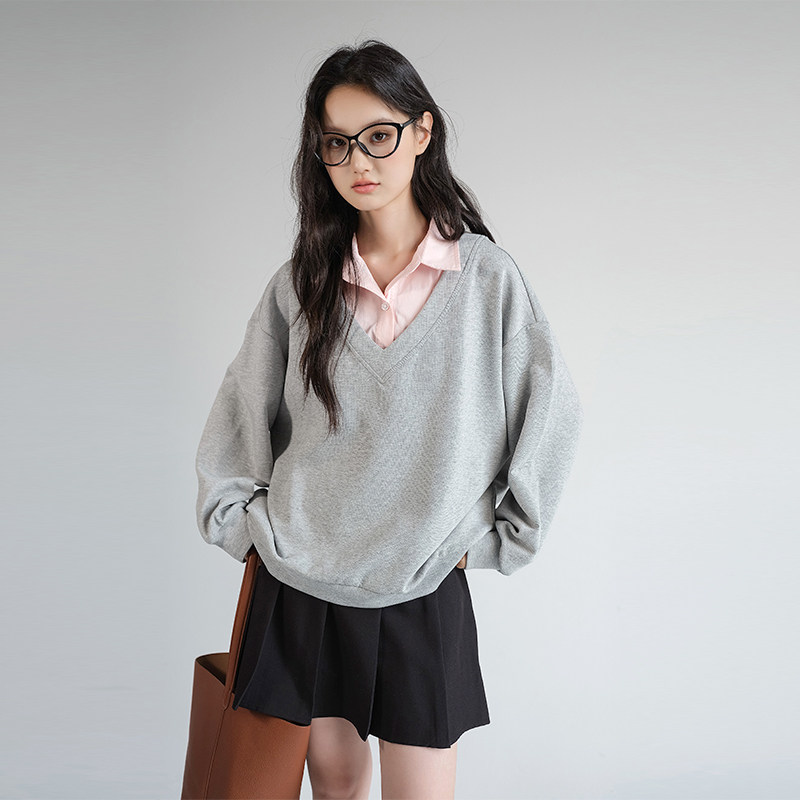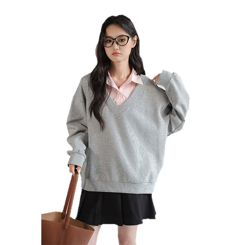 【清仓特惠】大码女装假两件衬衫领卫衣胖MM春装新款宽松韩系上衣