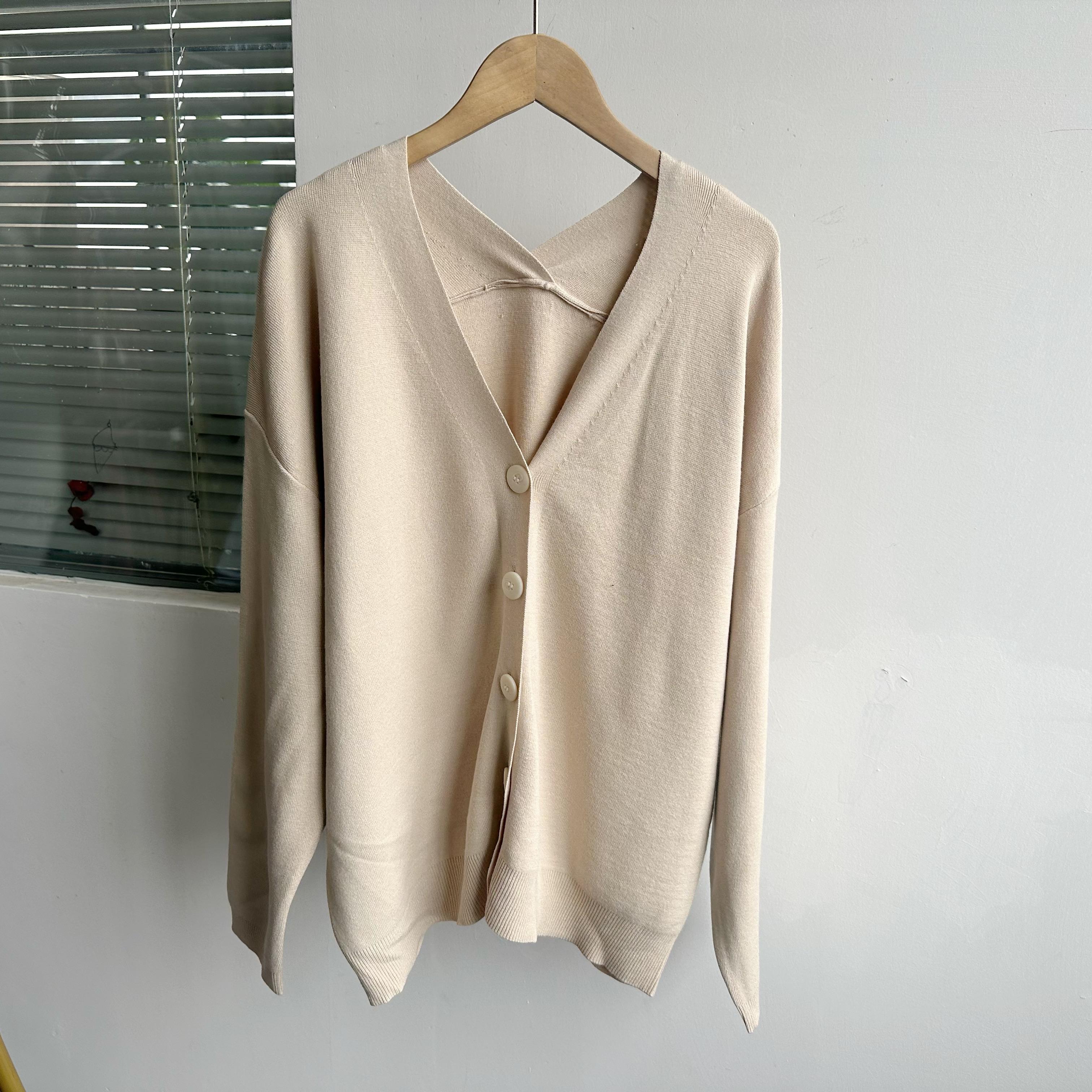 微瑕春秋款别致法式V领纯色针织开衫毛衣设计感小众宽松长袖H1