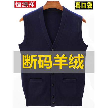 恒源祥羊绒背心男秋冬加厚保暖针织衣羊毛开衫老年爸爸装无袖坎肩
