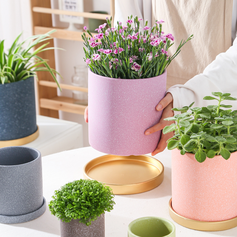 花盆陶瓷带托盘ins创意简约多肉兰花大号直筒盆栽容器包邮特价