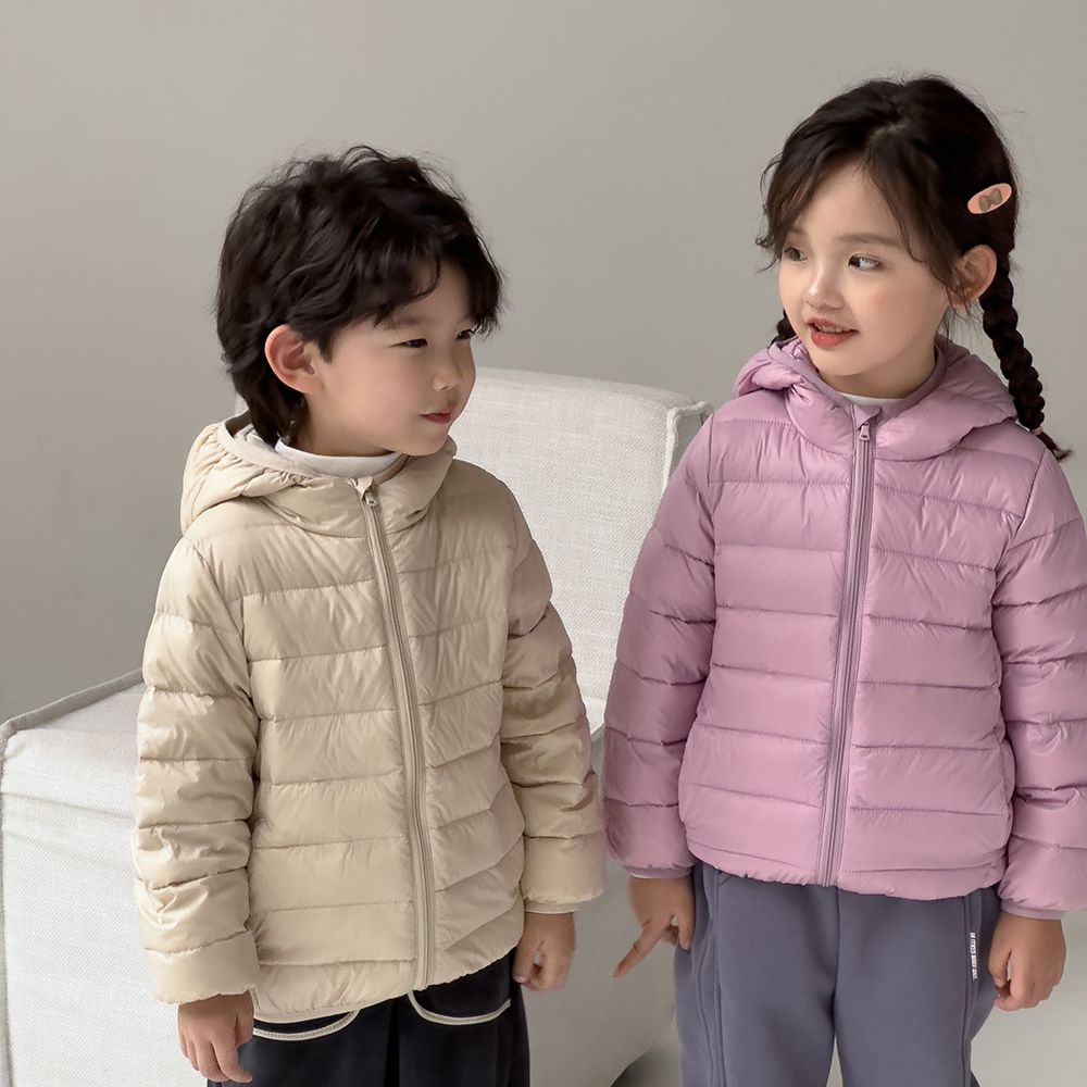 冬季男女童装小孩轻薄款羽绒服中大小童连帽儿童加厚保暖外套