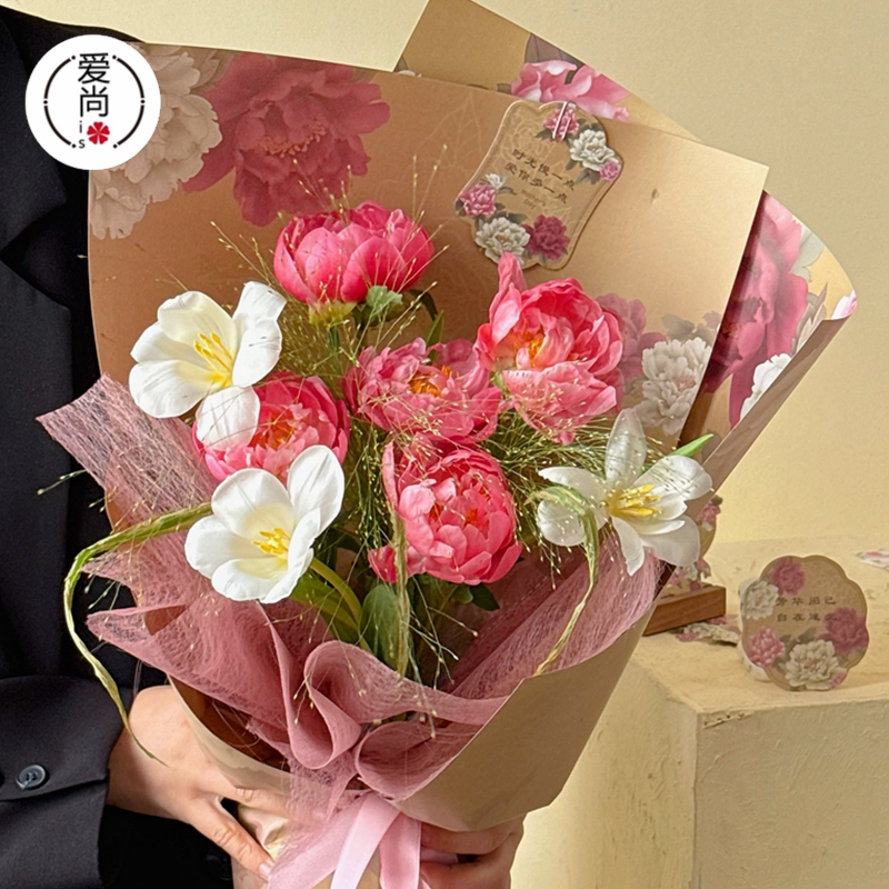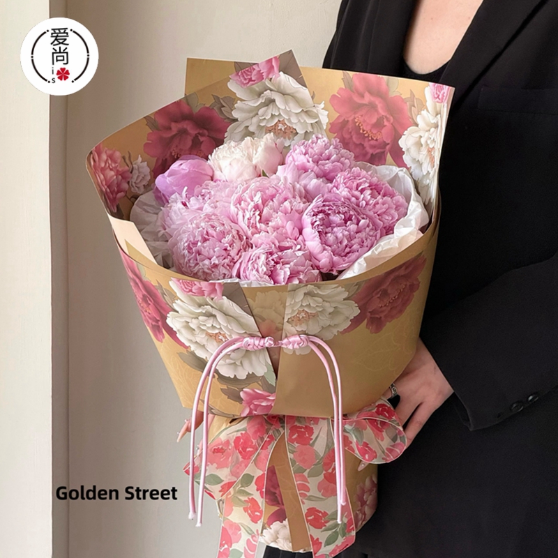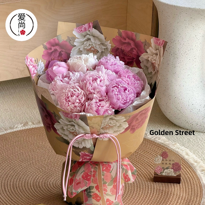 母亲节新中式共悦芳华花卉纸康乃馨芍药花束包花纸鲜花包装牛皮纸