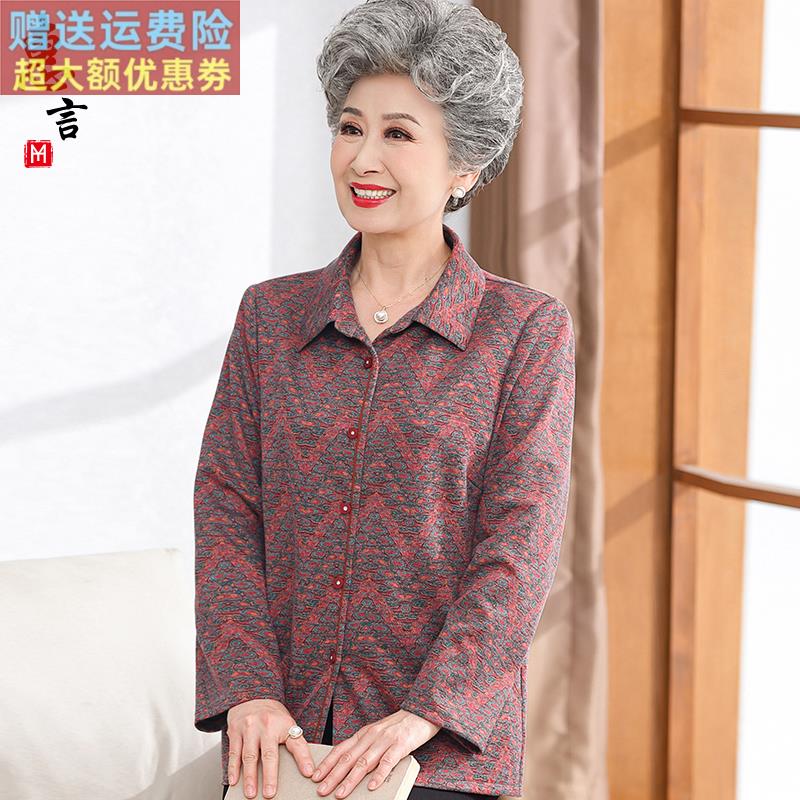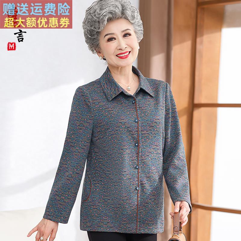 中老年人春装衬衫女奶奶装长袖上衣服老太太春秋外套妈妈衬衣套装