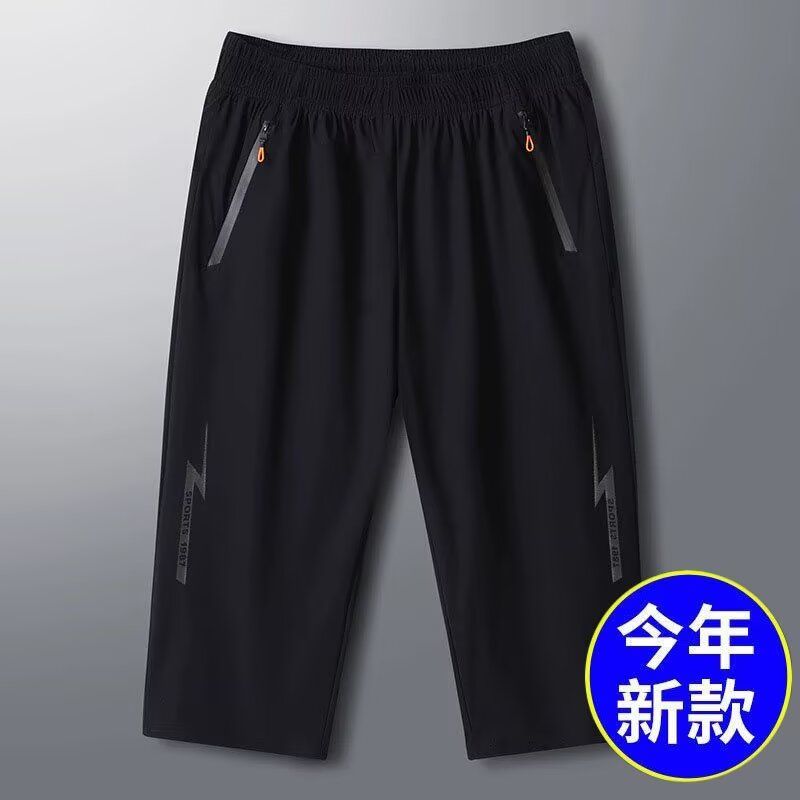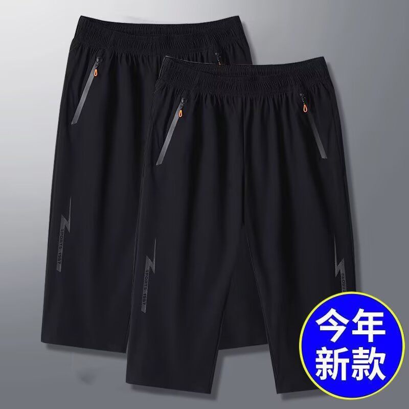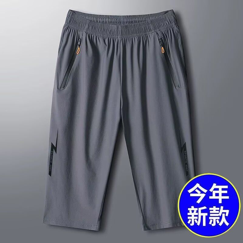 新款夏季速干冰丝高弹力休闲男士七分裤运动短裤中裤宽松大码男