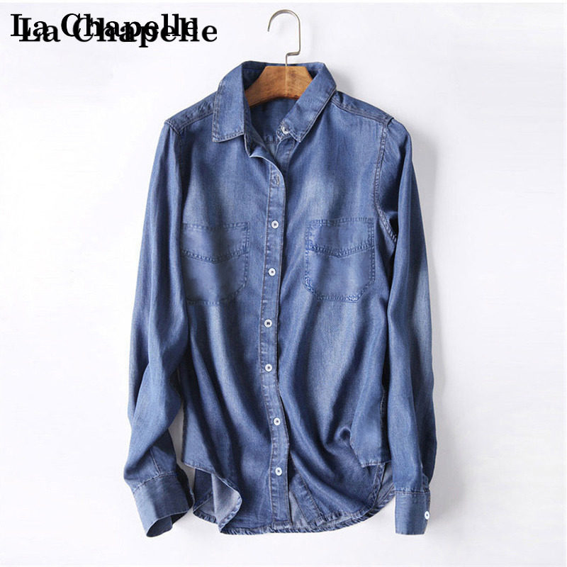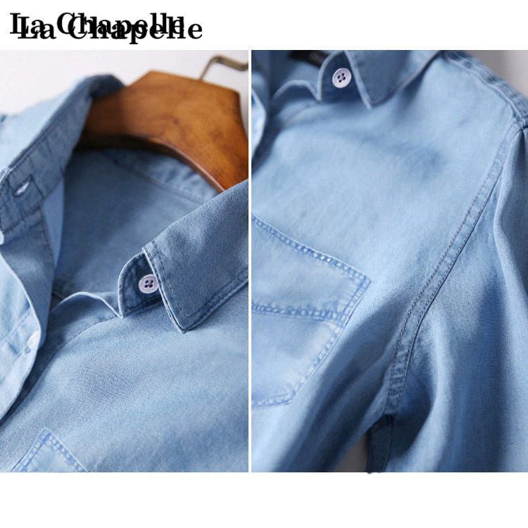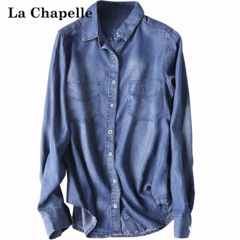 拉夏贝尔 超时尚薄款天丝软牛仔衬衫衬衣女士春夏2025新