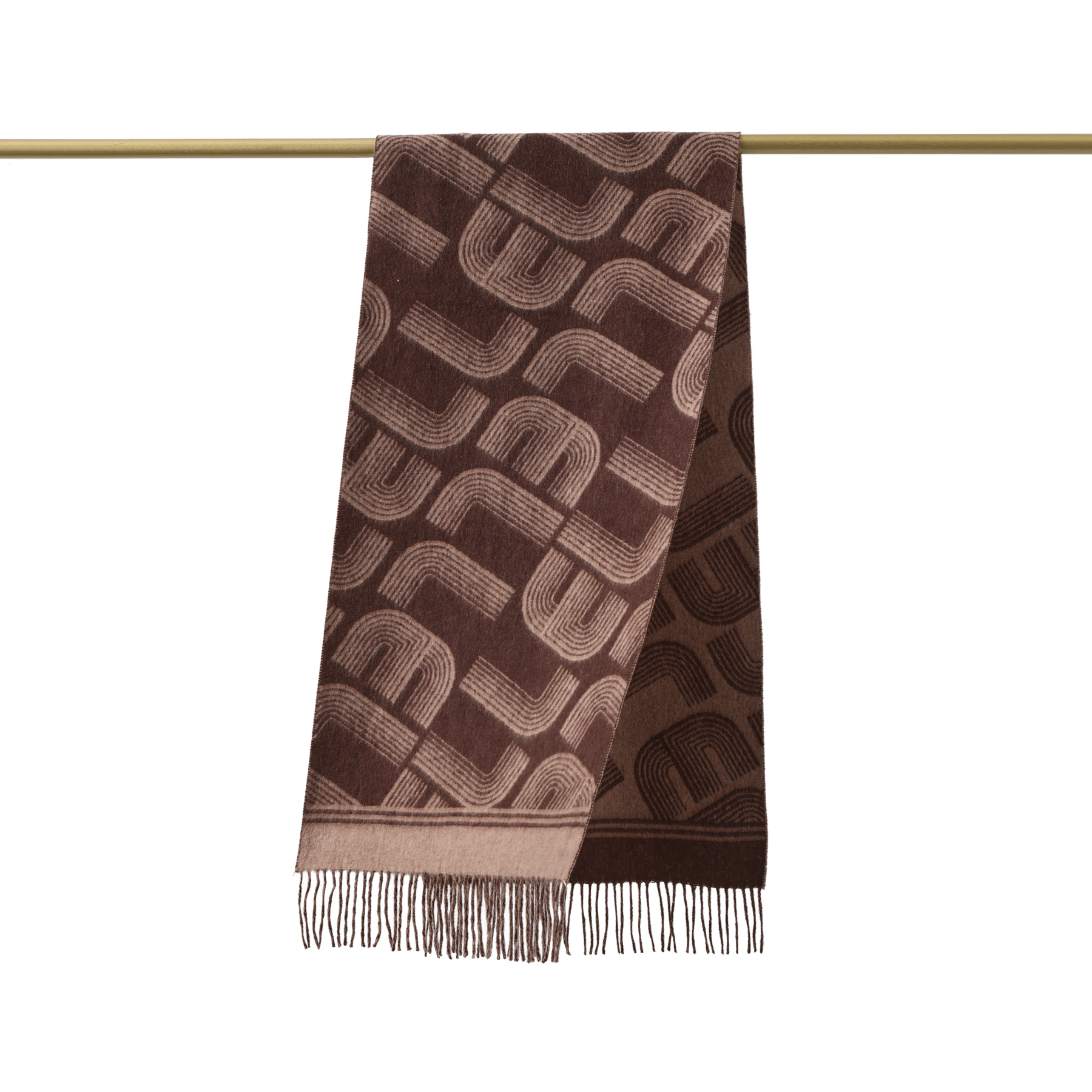 ELLE100%绵羊毛提花围巾女士秋冬季保暖线条字母时尚披肩围脖礼盒