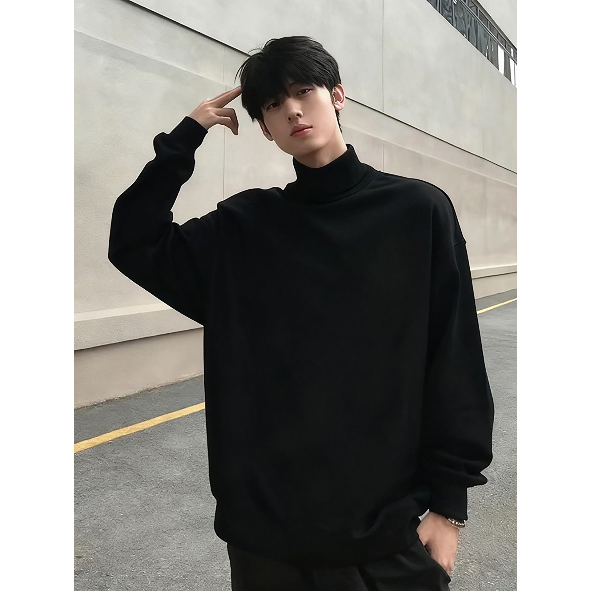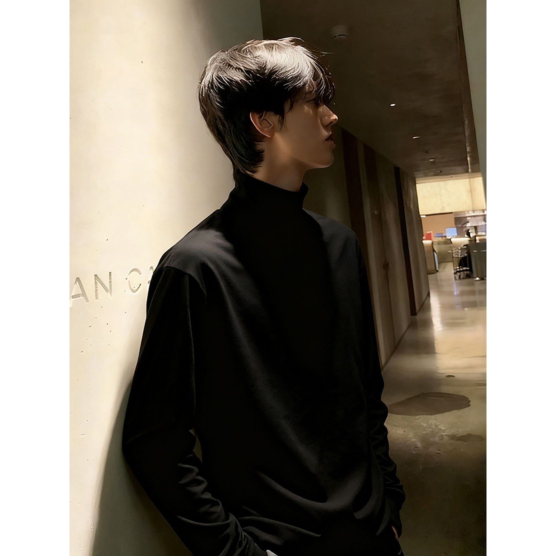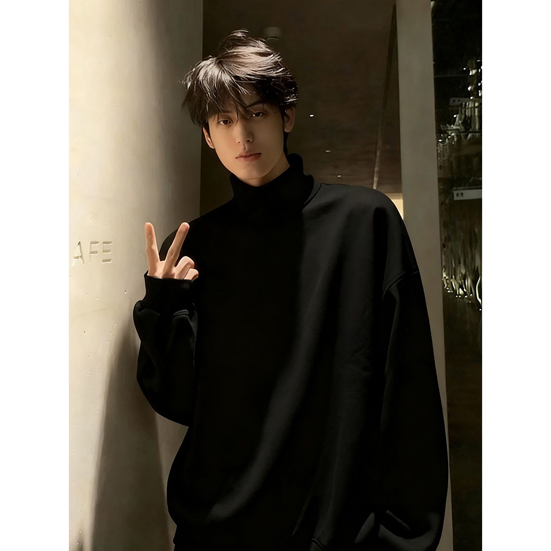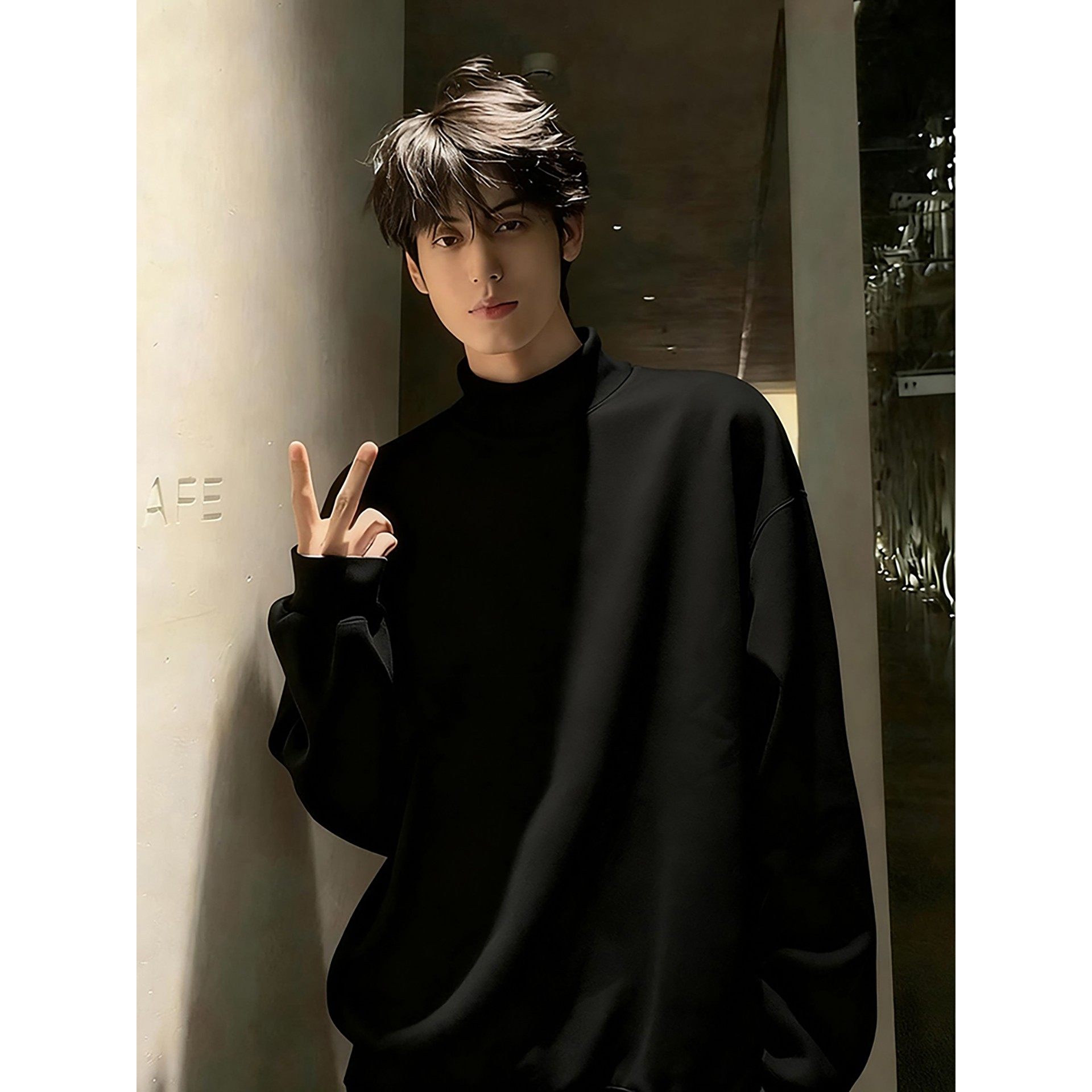 黑色半高领德绒打底衫男款秋冬加绒加厚卫衣潮牌痞帅内搭长袖t恤