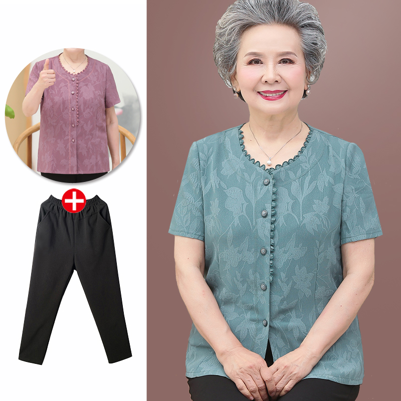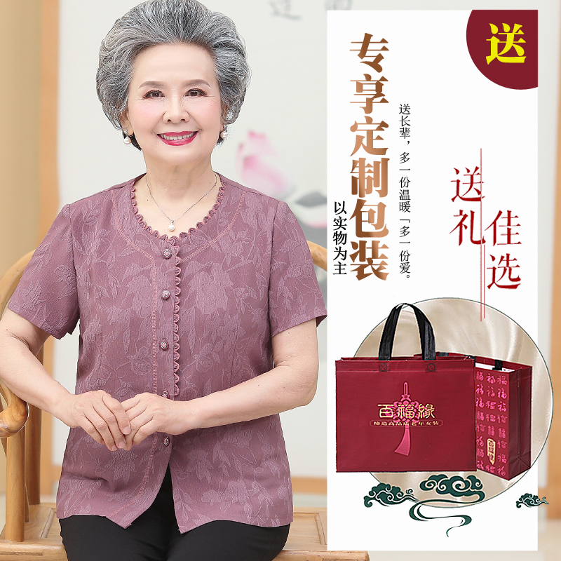 老人短袖衬衫奶奶外穿上衣老年装女妈妈夏装衬衣60岁70-80婆婆薄
