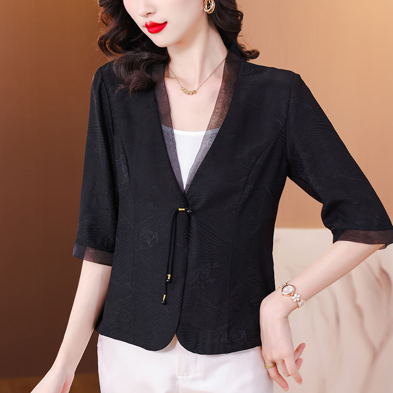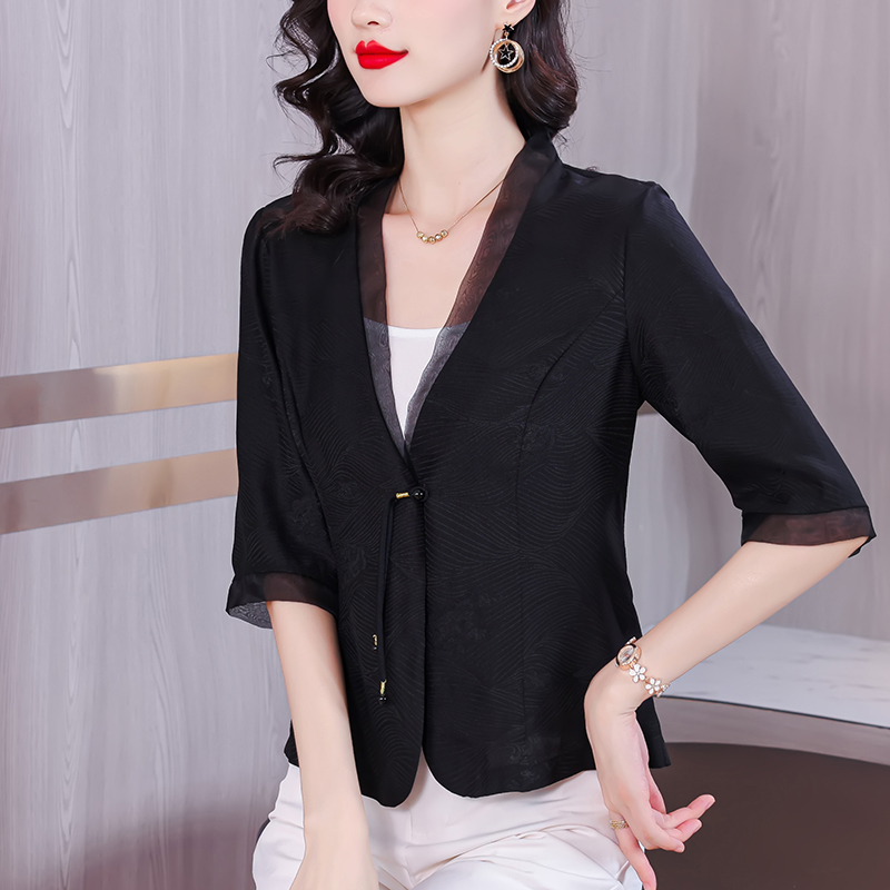 香云纱真丝西装外套女夏季新款气质妈妈裙子外搭真丝花萝开衫上衣
