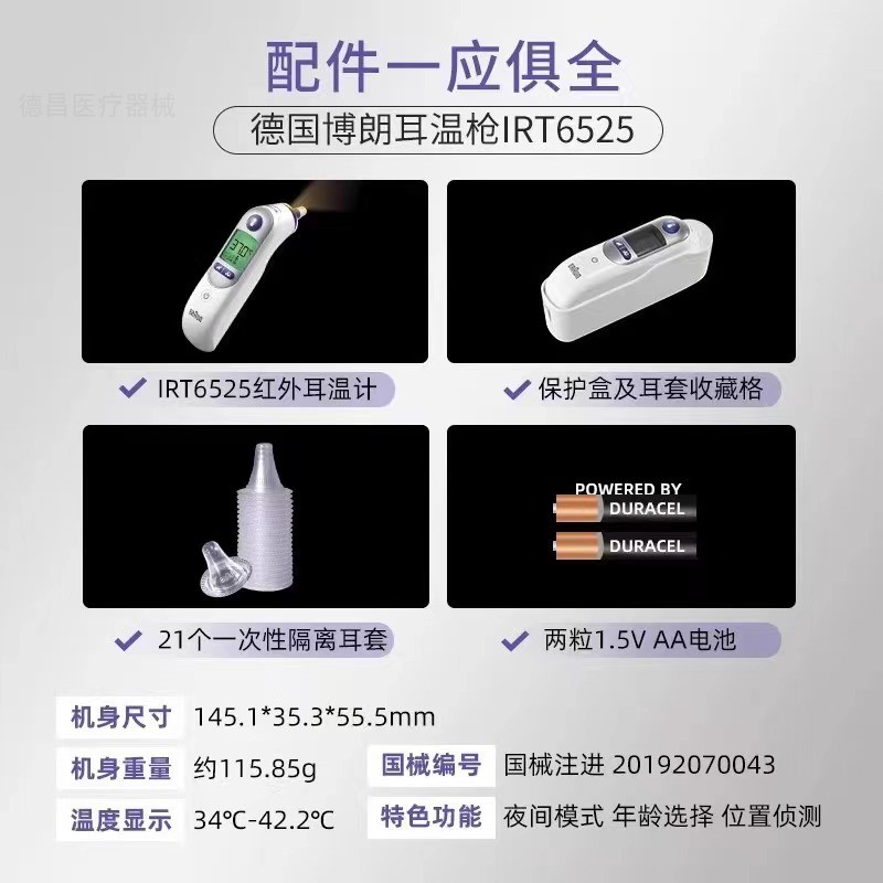 德国行博朗耳温枪IRT6525体温计防冻家用静音婴儿童专用夜视中文