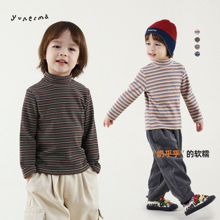 允儿妈男童冬季新款高领条纹打底衫 男孩秋冬个性T恤儿童时尚上衣