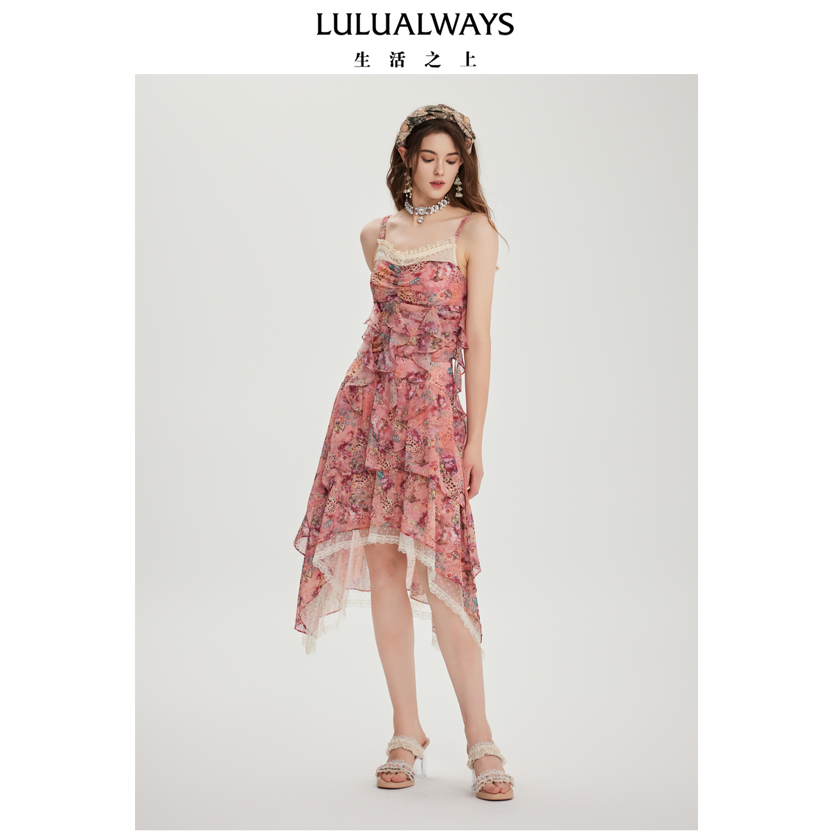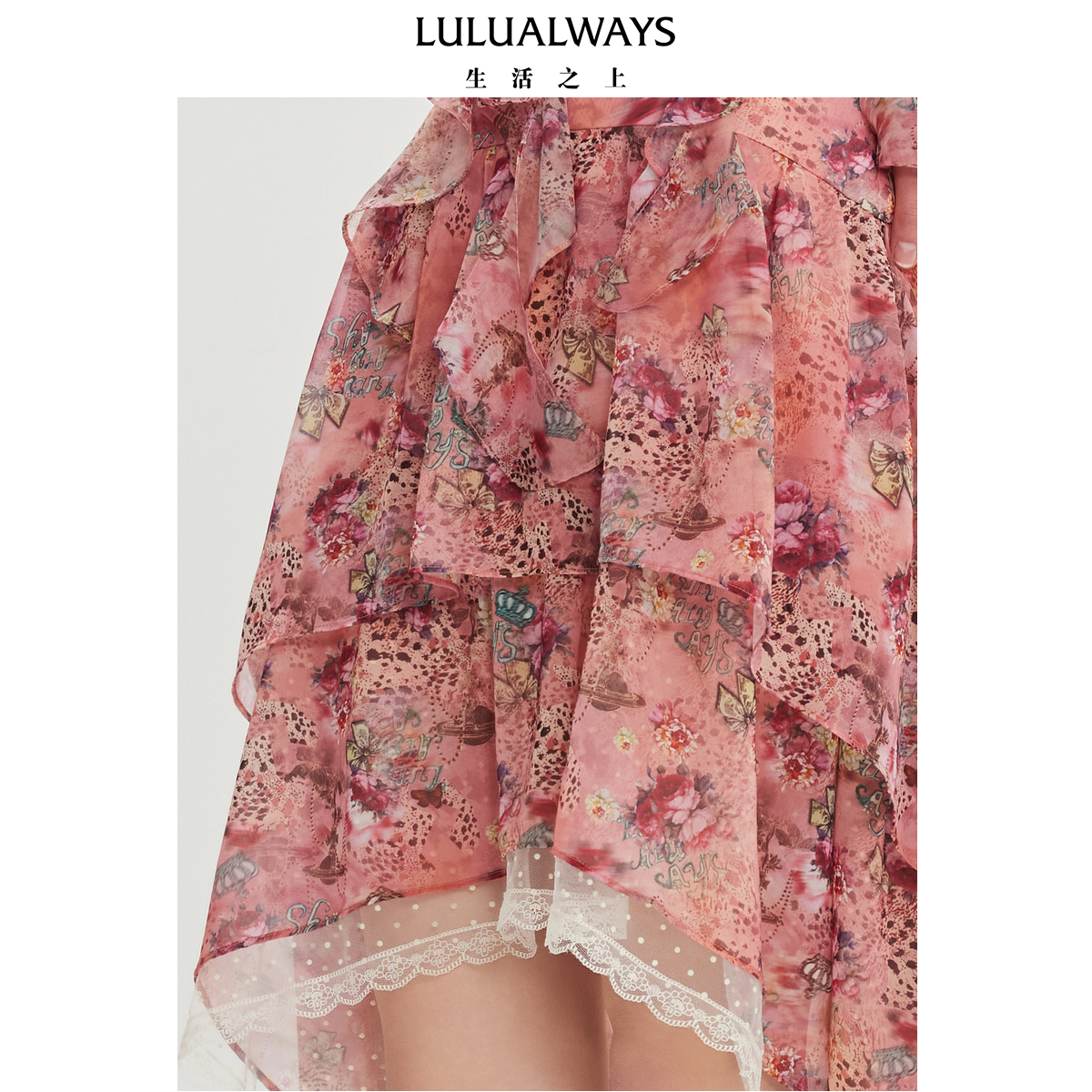 LULUALWAYS【商场同款】25夏季新款蕾丝拼接不规则宽松显瘦半身裙