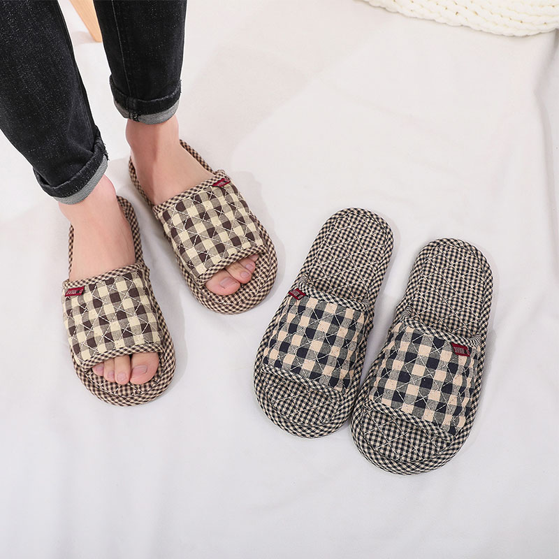 新款居家布艺布底布拖鞋女木地板静音春夏秋冬四季情侣软底可机洗
