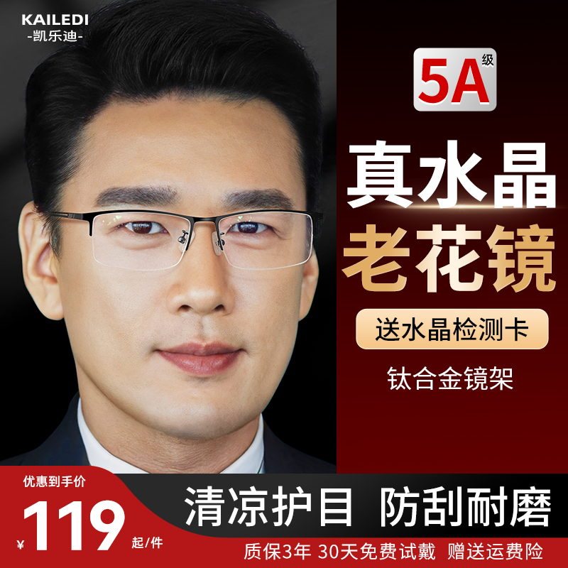 水晶东海老花镜男款正品官方旗舰店真水晶石高清时尚高档十大品牌