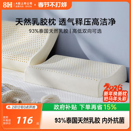 8H乳胶枕头泰国进口天然成人家用橡胶枕护颈椎助睡眠学生宿舍枕芯