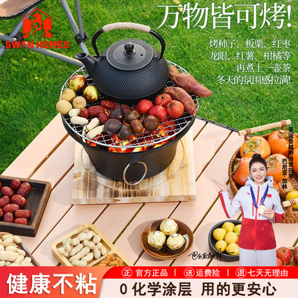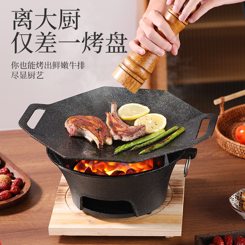 铸铁炭炉烧烤炉家用烤火炉室外围炉煮茶炉室内老式木碳取暖炉全套