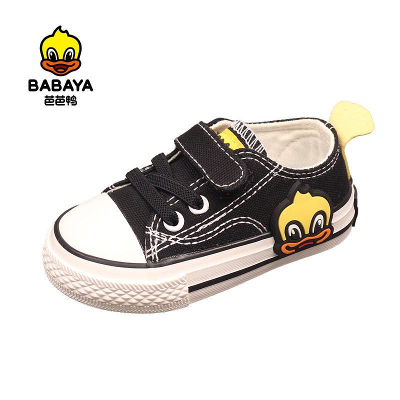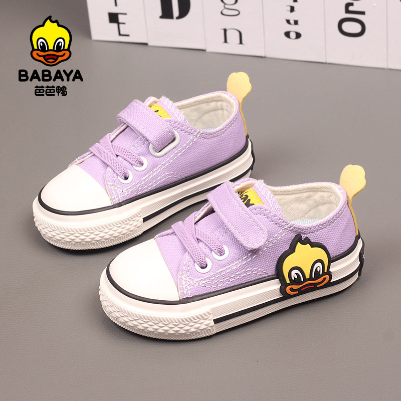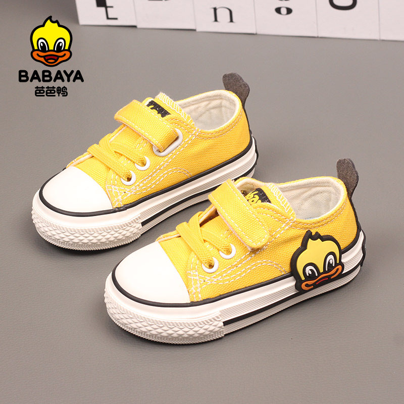 芭芭鸭童鞋春秋新款男儿童帆布鞋宝宝女童休闲鞋子韩版透气板鞋单