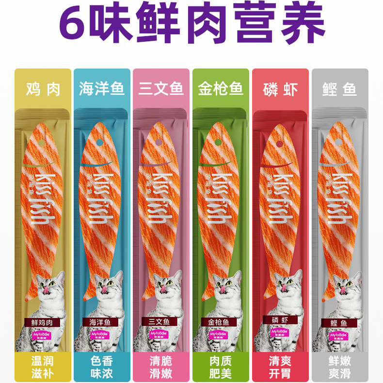 麦富迪猫条亲嘴鱼100支三文鱼鸡肉金枪鱼猫零食猫条整箱宠物猫咪