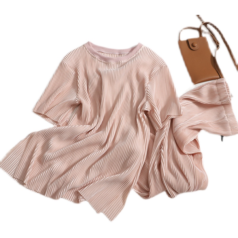 清仓捡漏专柜撤回特大码胖mm300斤百褶短袖上衣阔腿裤休闲套装女