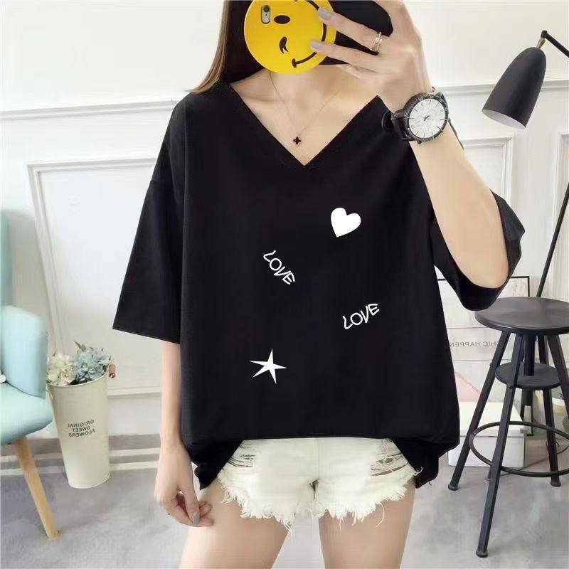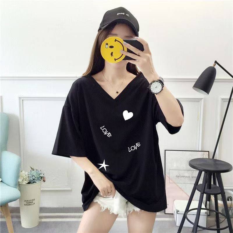 300斤胖mm夏季宽松显瘦短袖t恤240加肥加大200露背双V领女装上衣