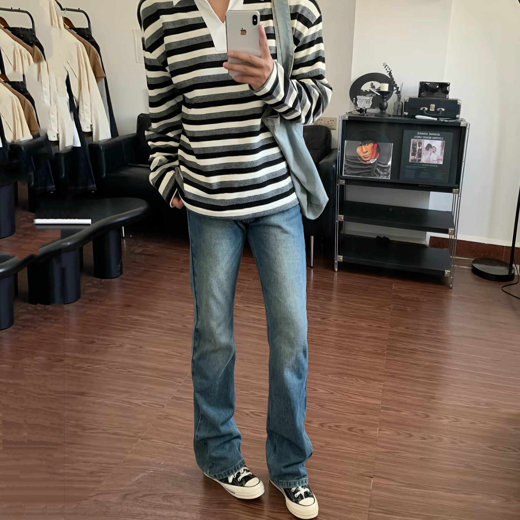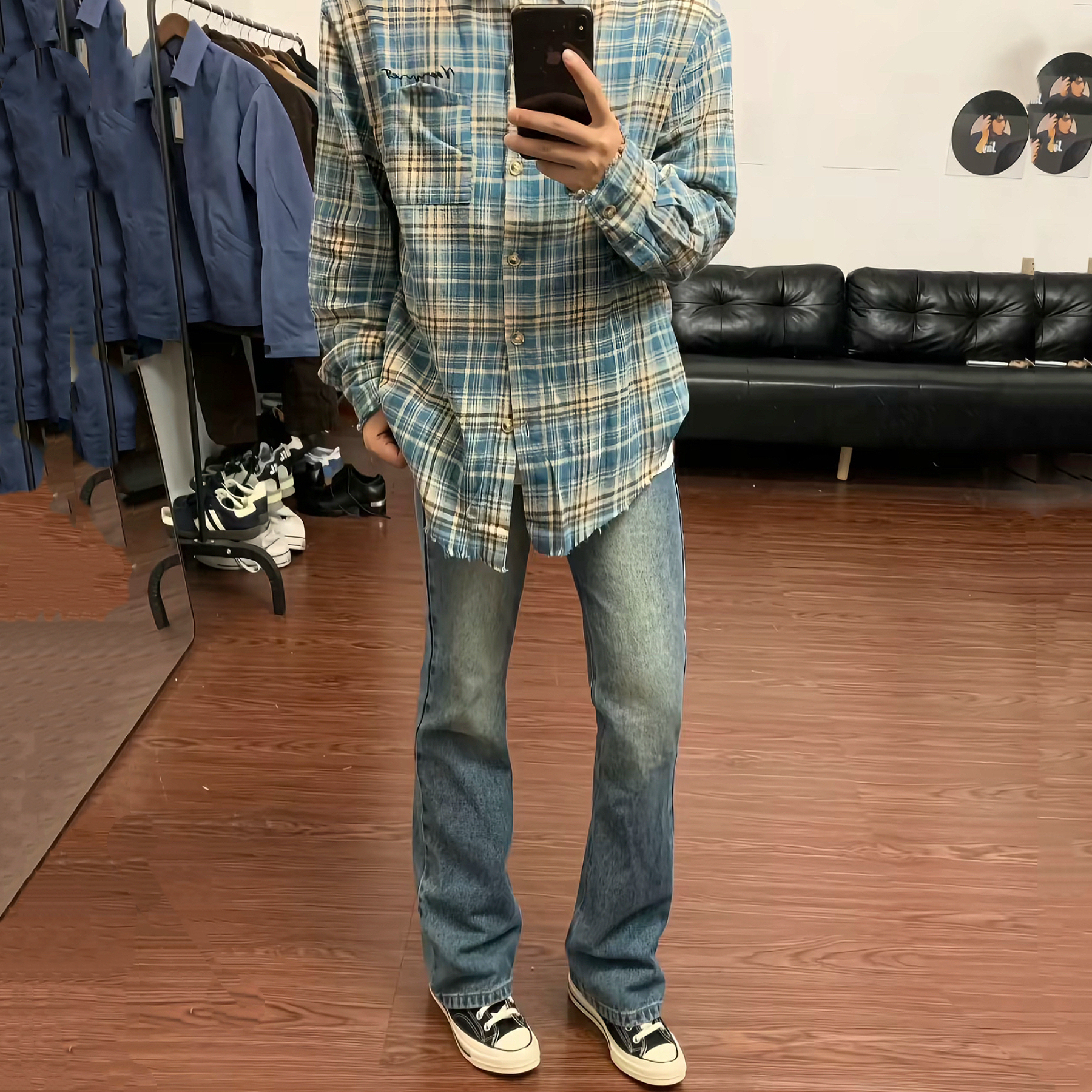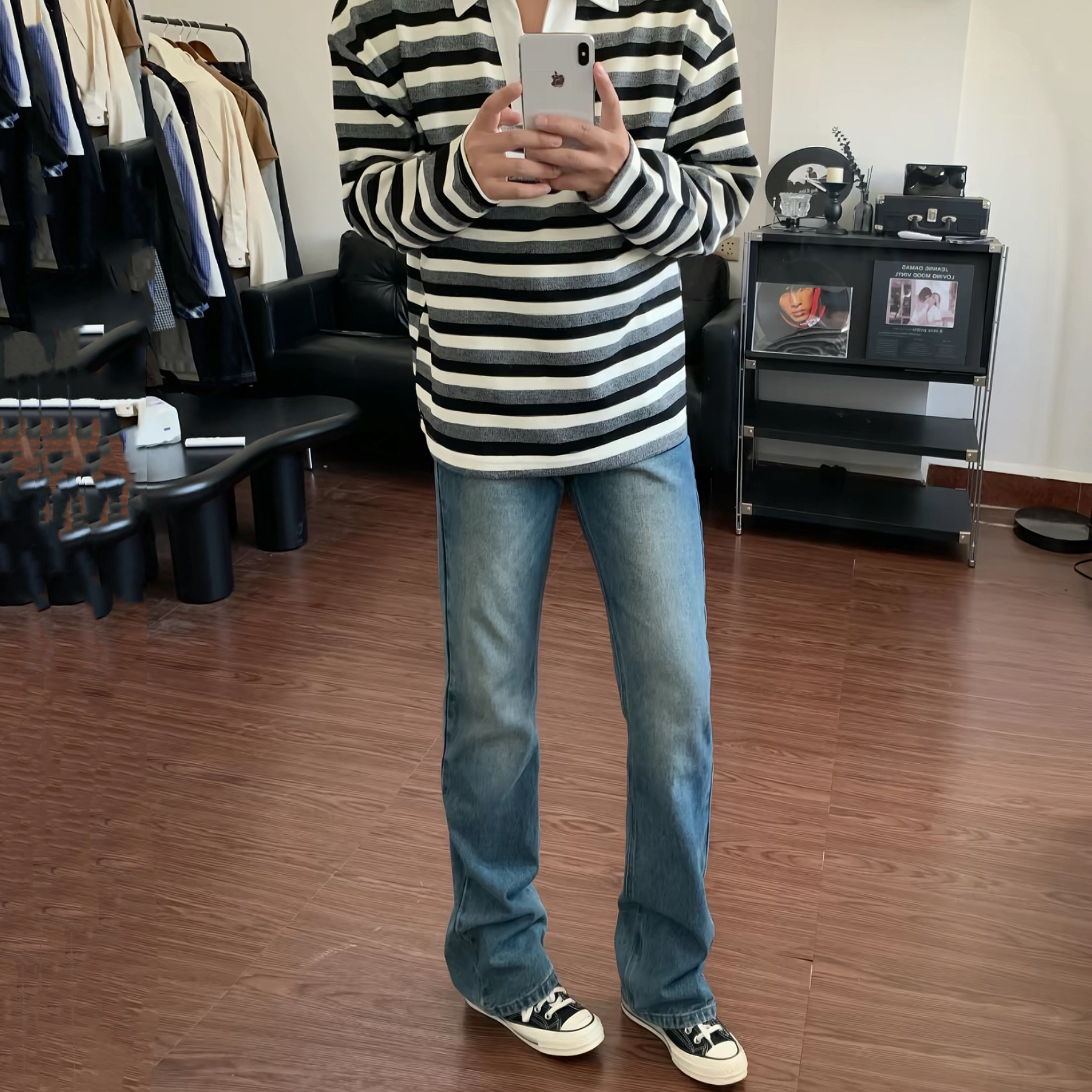 美式高街vibe风高盎司水洗波纹微喇vintage直筒修身牛仔裤517男潮