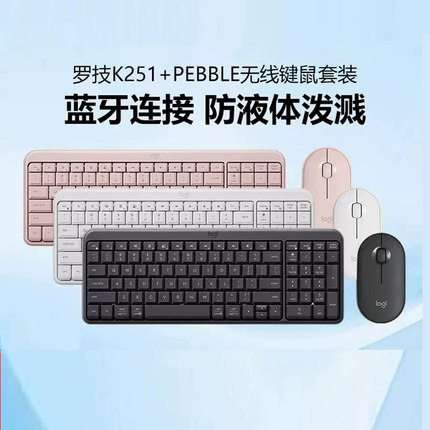 罗技键鼠套装K251无线键盘M196/M240蓝牙鼠标办公笔记本电脑家用