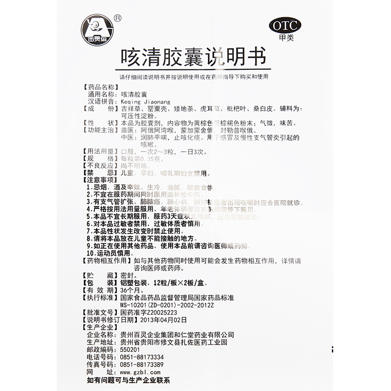 百灵鸟咳清胶囊咳嗽仁堂0.35g24粒润肺平喘化痰支气管止咳感冒