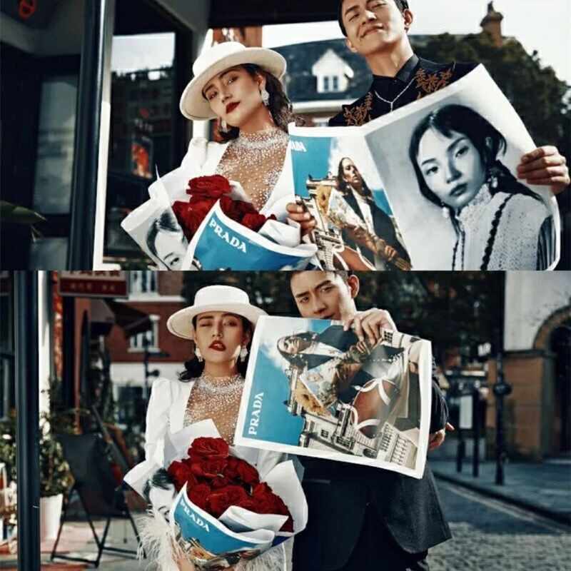 英伦时尚婚纱摄影 外景街拍包花报纸杂志风海报欧美ins风拍照道具
