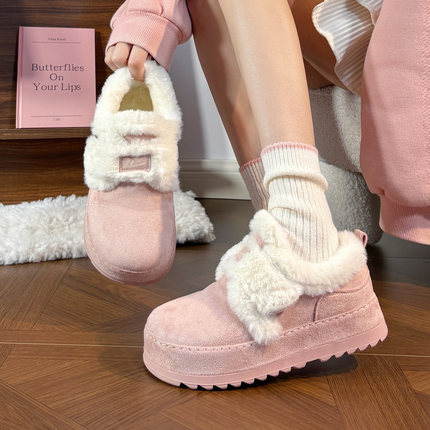 回力加绒粉色雪地靴女软底靴子