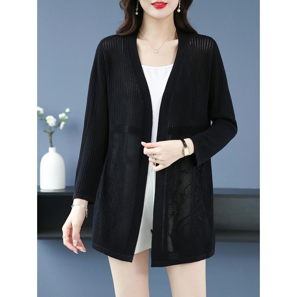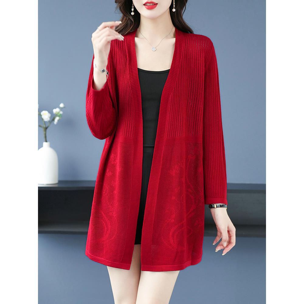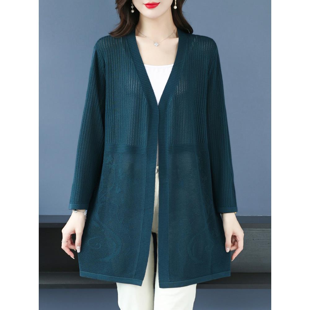 妈妈冰丝针织开衫女防晒空调衫披肩春夏中老年宽松大码镂空薄外套