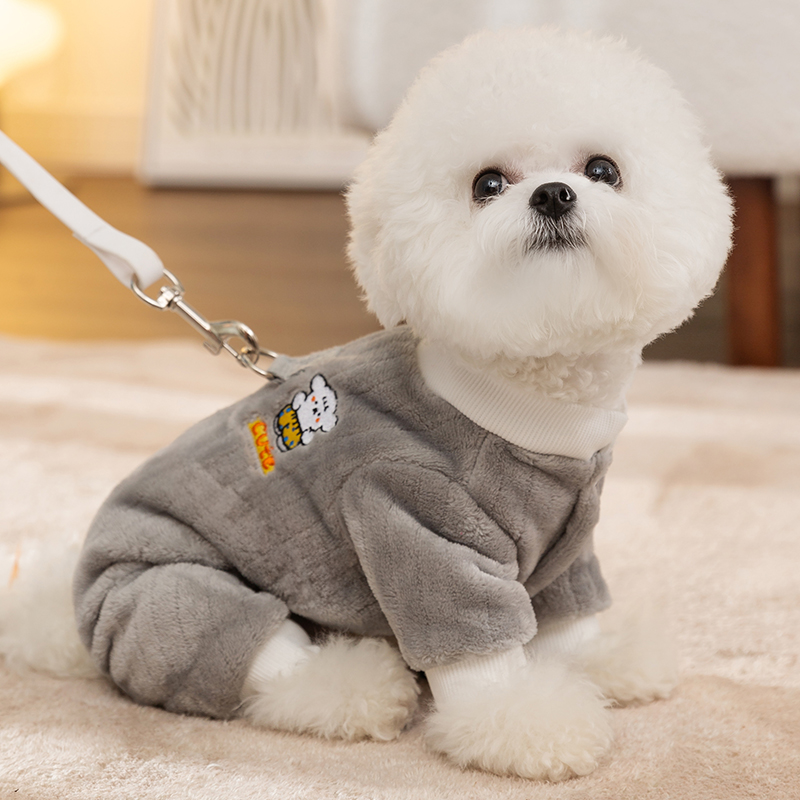 宠物狗狗条纹法兰绒牵引四脚绒衣秋季冬季保暖衣服比熊泰迪博美犬