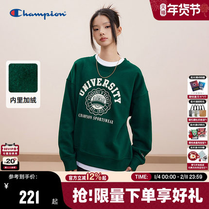 Champion冠军加绒圆领卫衣女