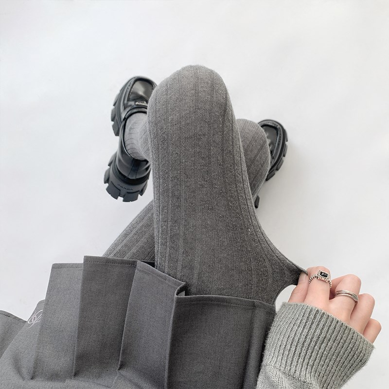 夜间教习室灰色打底袜显瘦学院风过膝jk袜秋冬长筒白色连裤袜子女