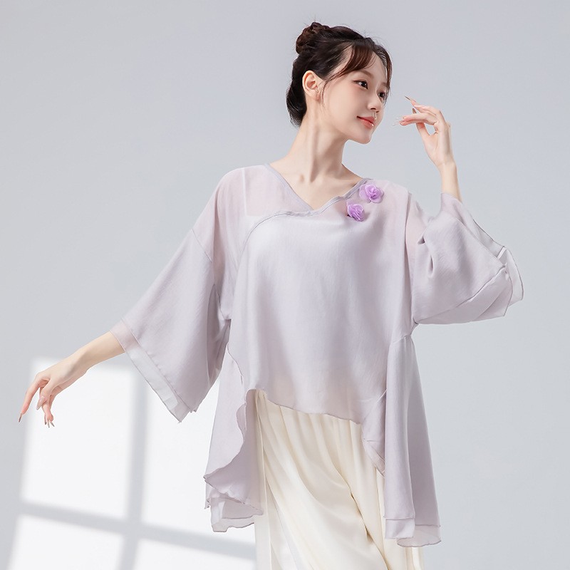 新中式古典舞成人女仙气飘逸七分袖纱衣身韵服中国舞古风演出服装
