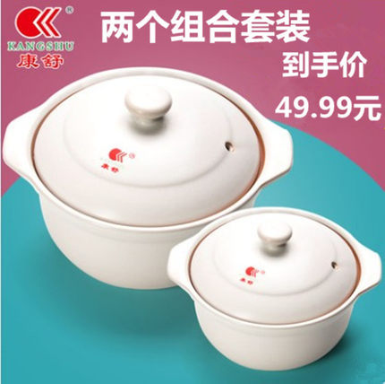 康舒砂锅大号煲汤炖锅家用明火石锅陶瓷煲煮粥汤煲土锅浅锅2件套