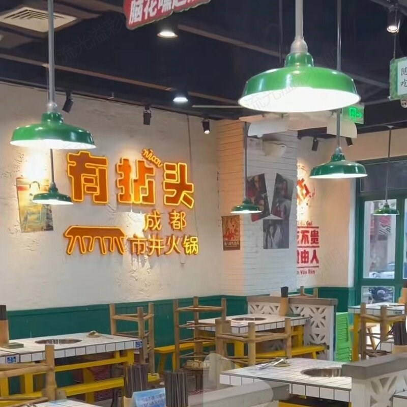 火锅店吊灯 怀旧复古 餐厅吊灯老D式做旧灯罩工业风军绿仿搪瓷壁