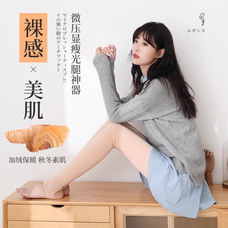 光腿神器女连裤袜女春秋款秋冬防勾丝加绒肉色打底裤黑色薄绒肤色