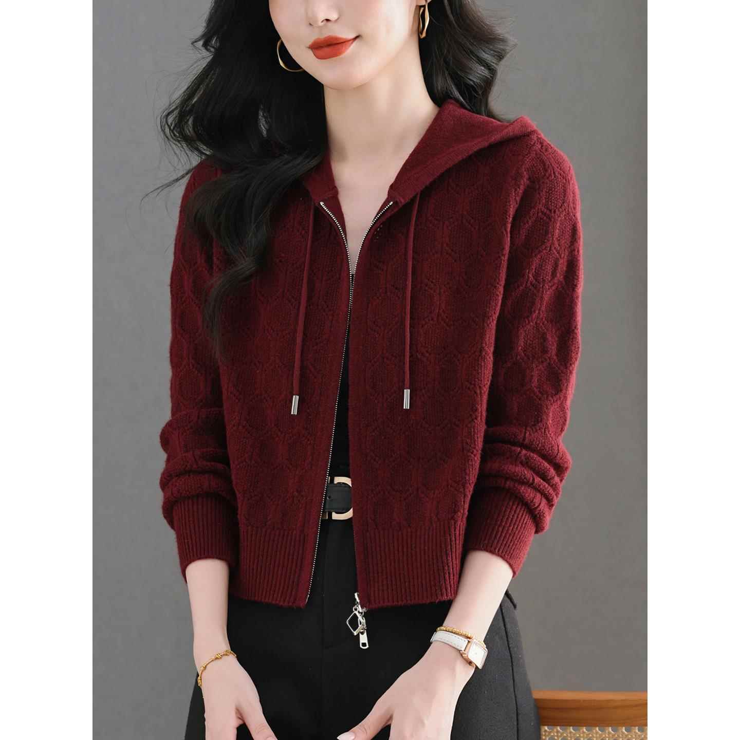 女士连帽卫衣短外套秋装2025新款妈妈小个子爆款针织开衫春秋上衣