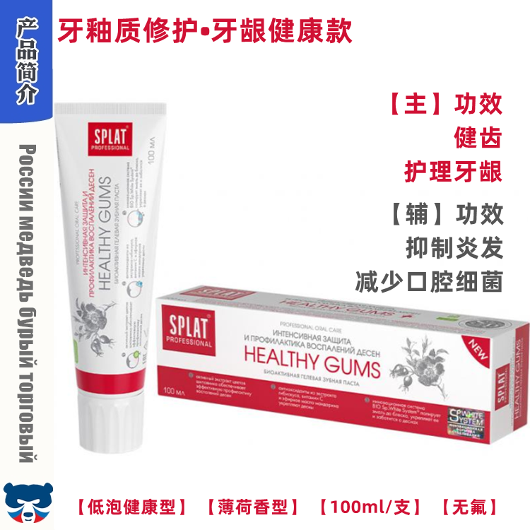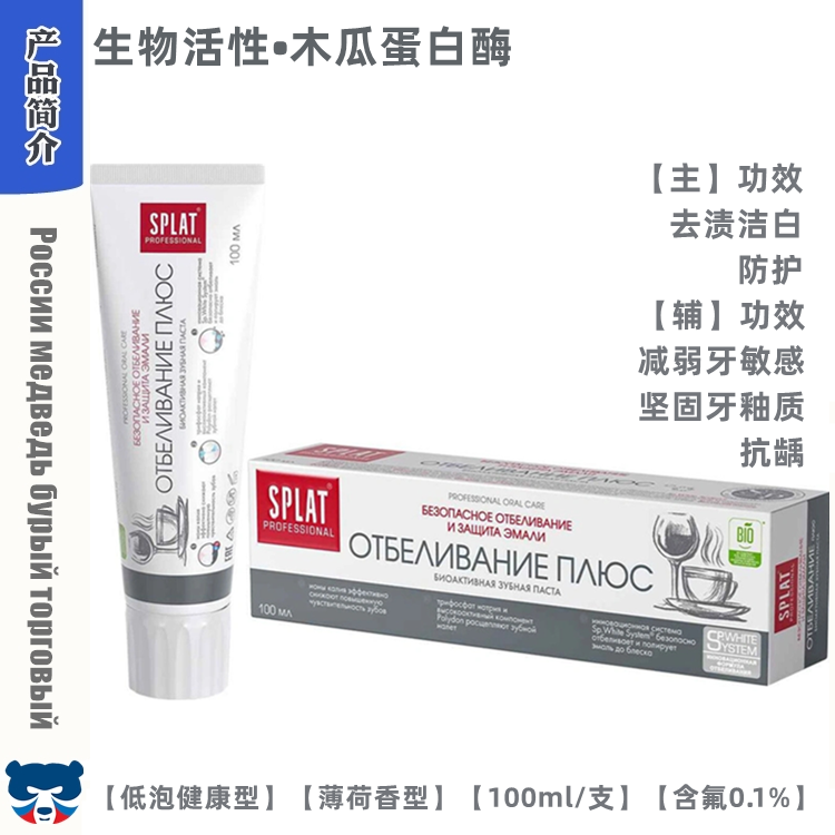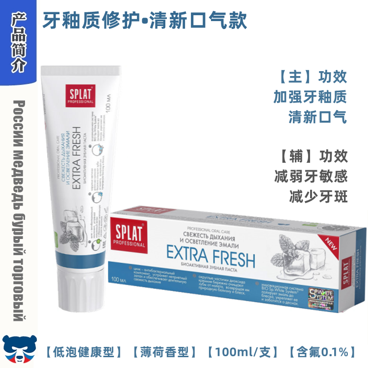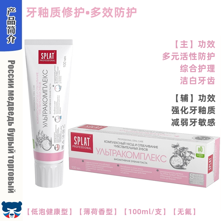 俄罗斯splat斯普雷特进口原装牙膏清新口气含氟无氟清洁去渍敏感