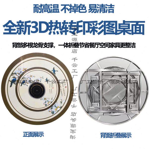 不锈钢转盘圆桌火锅桌餐桌饭台饭桌带圆盘折叠桌子家用商用圆形台