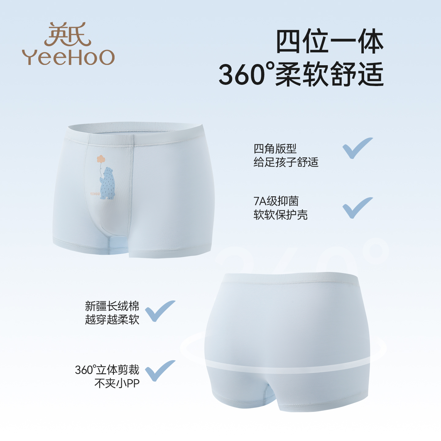 英氏儿童内裤男童纯棉抑菌四角短裤透气中大童底裤2025年四季新款