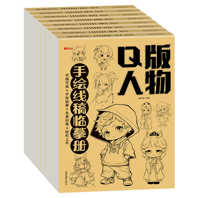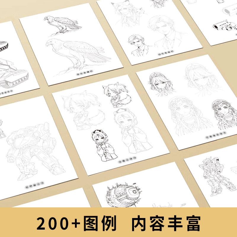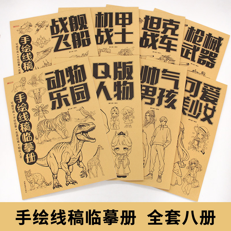 漫画入门手绘描摹本描红本 手稿线稿临摹册全套8册漫画技法自学零基础Q版人物美少女男孩机甲战士动物枪械武器 铅笔画成人少儿绘画