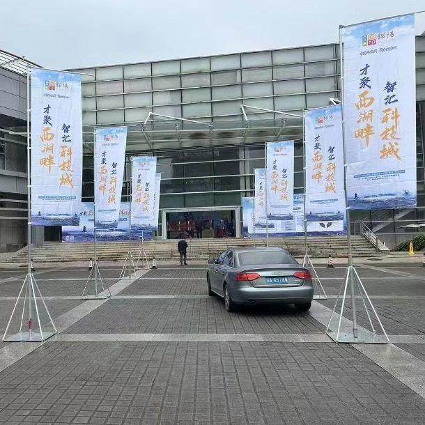 户外防风铁板道旗免注水旗可伸缩地产宣传道旗5米旗杆