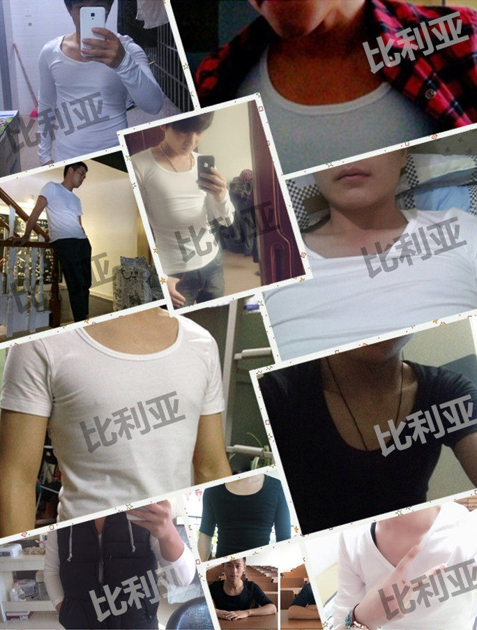 性感低领大圆领短袖男T恤