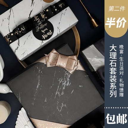 大理石礼物包装纸黑色加厚ins风生日礼盒手工礼品七夕情人节包邮
