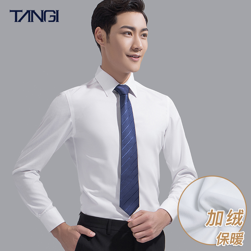 加绒白衬衫男商务正装修身职业免烫男士白色西装加厚衬衣长袖冬季