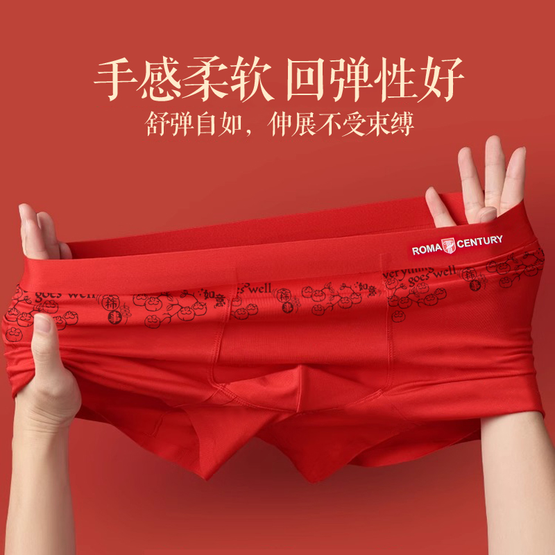 本命年内裤男属龙年四角新款男士红色内裤莫代尔透气柔顺礼盒平角